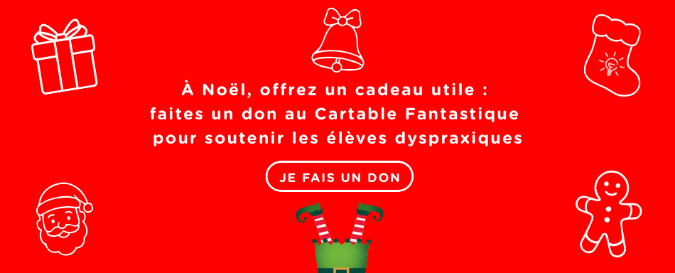 À Noël, offrez un cadeau utile : un don au Cartable Fantastique pour soutenir les élèves dyspraxiques